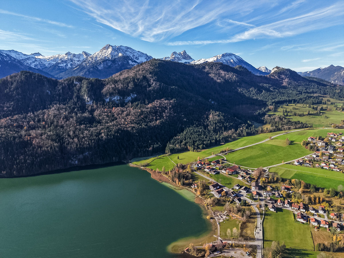 Sie erreichen den See in wenigen Schritten, starten direkt in Wanderwege und finden zugleich alle Highlights der Region in kurzer Entfernung: Füssen Zentrum (6km), Hopfensee (7km), Forggensee (11km), Neuschwanstein (10km), Bergbahnen und vieles mehr.